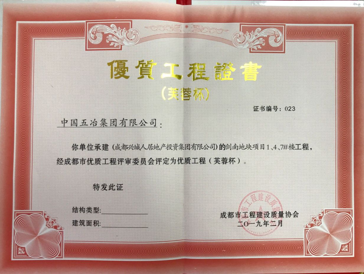劍南地塊項(xiàng)目1、4、7#樓-2018年度芙蓉杯