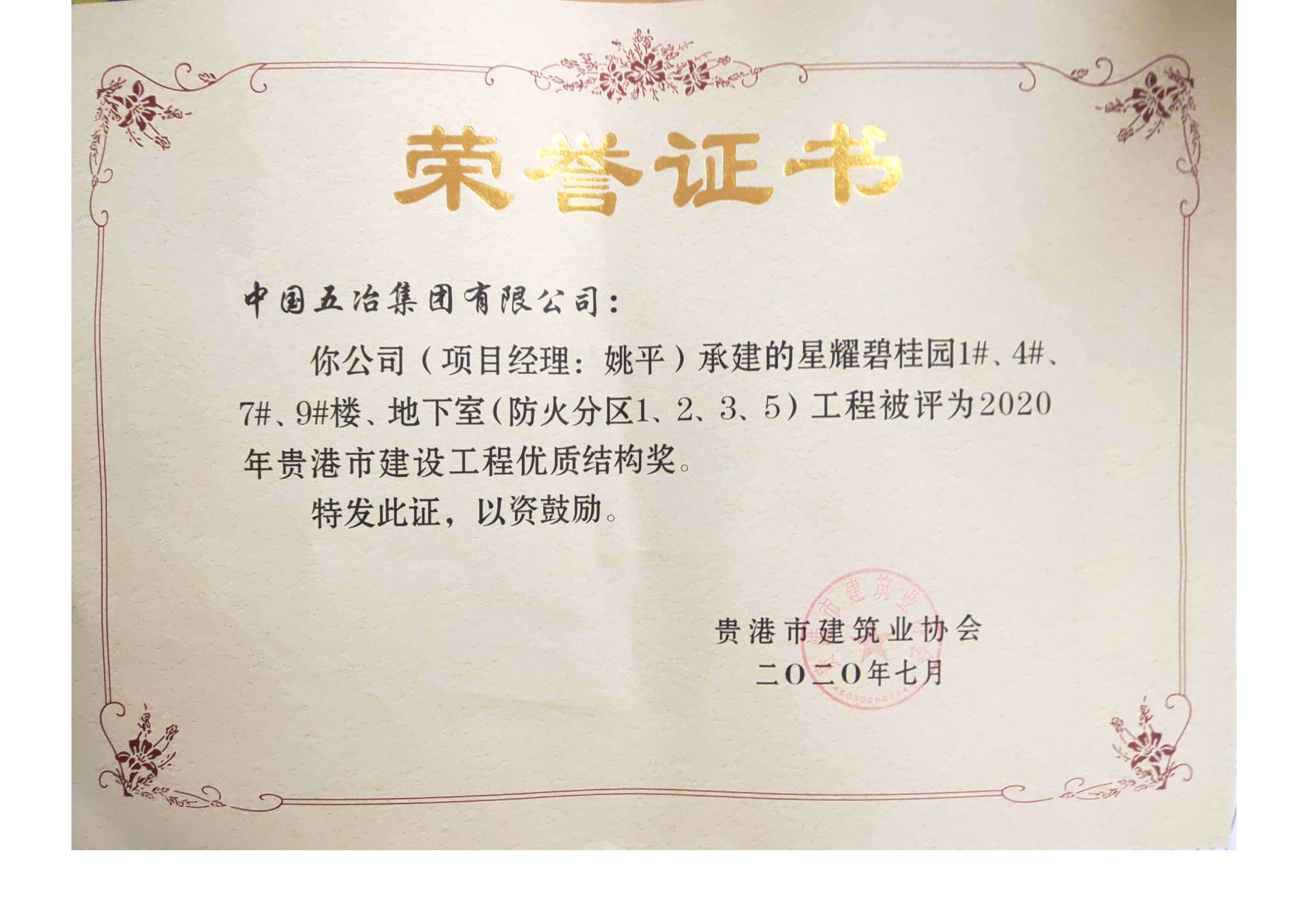 星耀碧桂園1#、4#、7#、9#、地下室工程—2020年貴港市建設(shè)工程優(yōu)質(zhì)結(jié)構(gòu)獎(jiǎng)