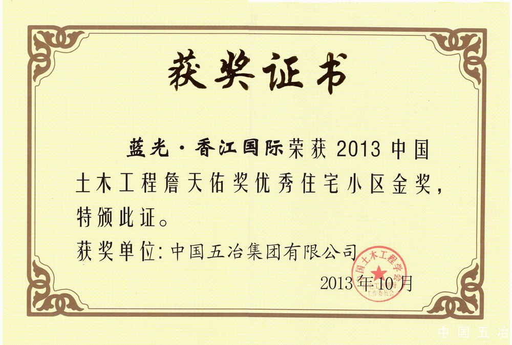 藍(lán)光·香江國(guó)際項(xiàng)目-2013年中國(guó)土木工程詹天佑獎(jiǎng)優(yōu)秀住宅小區(qū)金獎(jiǎng)
