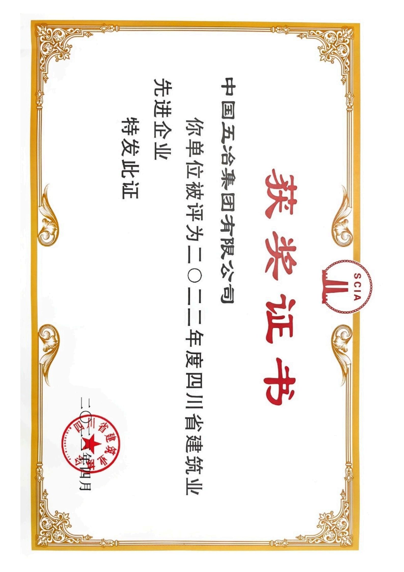 四川省建筑業先進企業