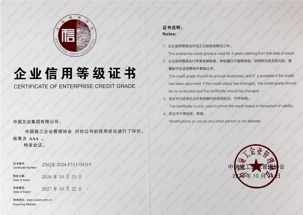 全國(guó)施工企業(yè)AAA信用等級(jí)