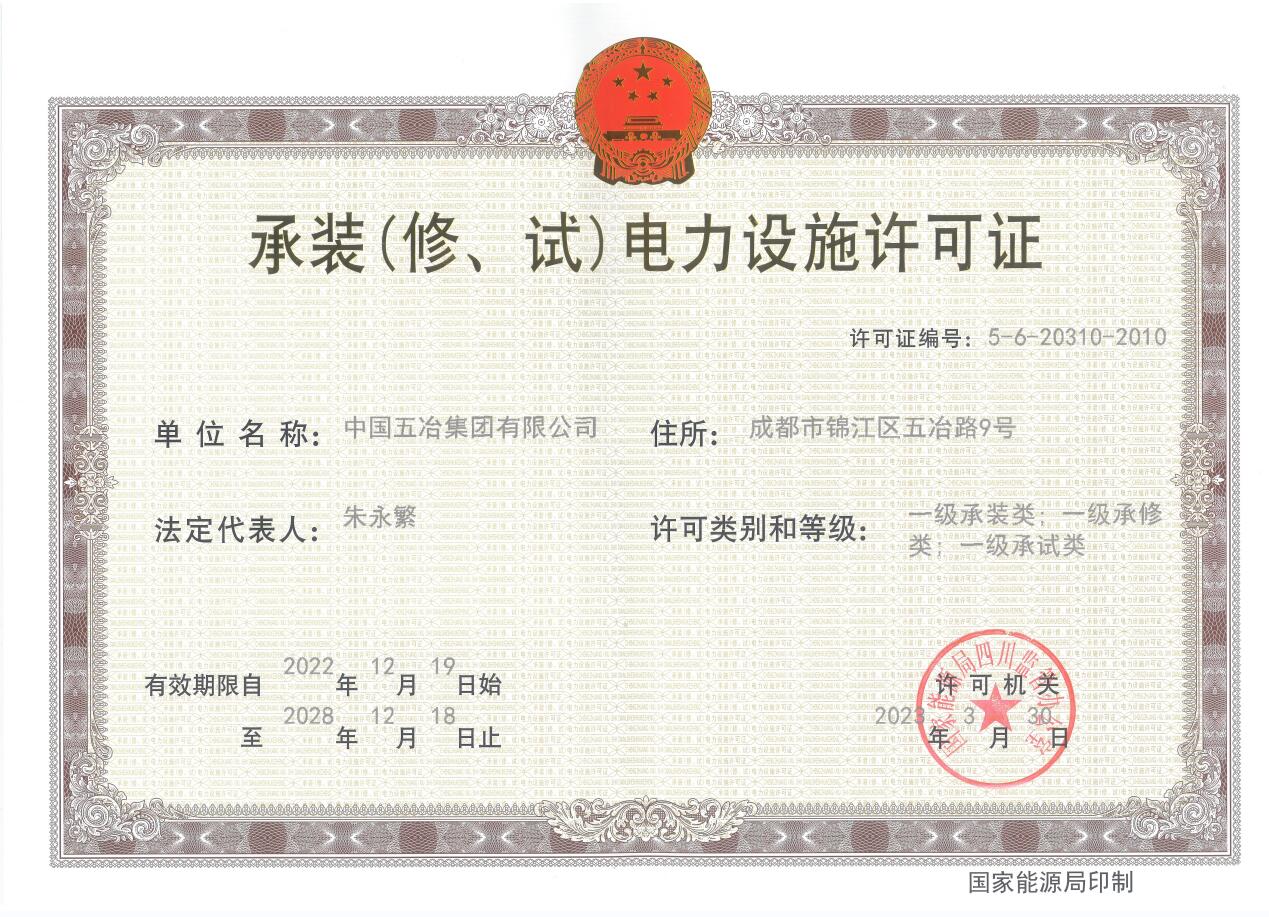 承裝(修、試)電力設施許可證(一級)