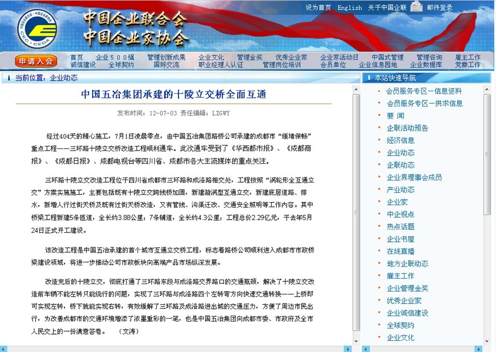 中國企業聯合會報道:中國五冶集團承建的十陵立交橋全面互通