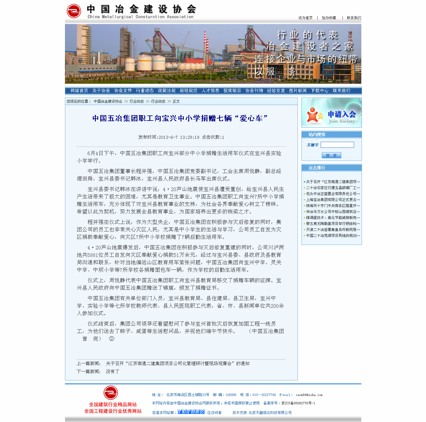 中國冶金建設網報道:中國五冶集團職工向寶興中小學捐贈七輛“愛心車”