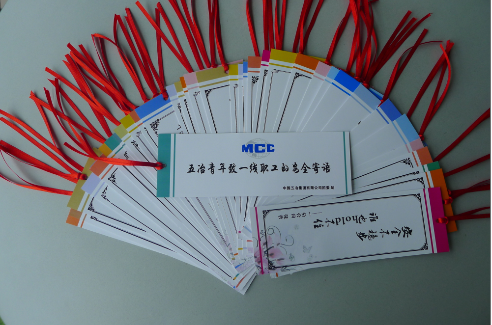 ??????? 8月7日上午,一種設計獨特新穎、制作精美的書簽式安全寄語卡送到了元華路項目30多位職工的手中。這是公司團委經過2個月的廣泛征集和設計制作,最終形成的“五冶青年致一線職工的安全寄語”書簽卡。從現在起,這些小巧而精美的卡片將陸續送到公司川滬兩地施工現場。