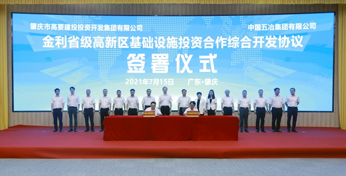 7月15日,中國五冶集團與廣東肇慶高要建設投資開發集團簽署肇慶金利高新技術產業開發區(含蜆崗鎮)、活道橫江產業園基礎設施項目投資合作協議。肇慶市委常委、高要區委書記楊志,中國五冶集團黨委書記、董事長朱永繁出席并見證簽約。
