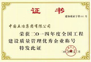 ??2015年2月,中國五冶集團有限公司榮獲2014年度全國工程建設質量管理優(yōu)秀企業(yè)稱號。