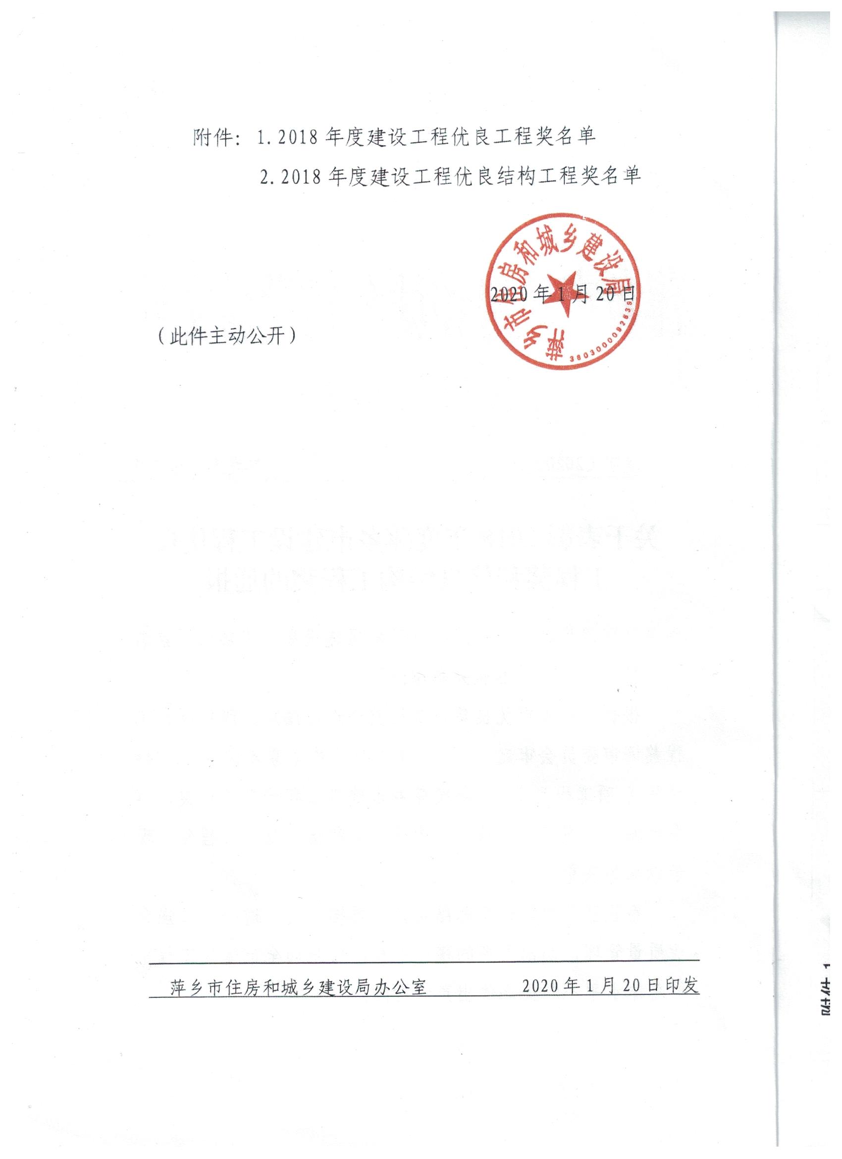 上栗縣城鎮化基礎設施建設PPP項目縣北工業園標準化廠房工程榮獲2018年度萍鄉市建設工程優良結構工程獎