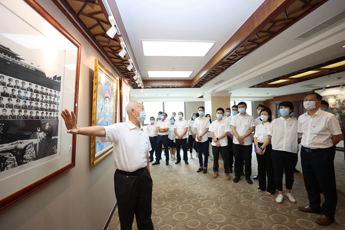 美術作品展開幕當天,四海畫院名譽院長李任仕同志向公司黨員干部詳細介紹了每幅作品的歷史背景和人物故事,以點帶面生動再現了各個時代川渝籍共產黨人的光輝事跡和黨史人物的鮮活形象,謳歌了巴蜀大地的百年黨史和前輩們的豐功偉績。