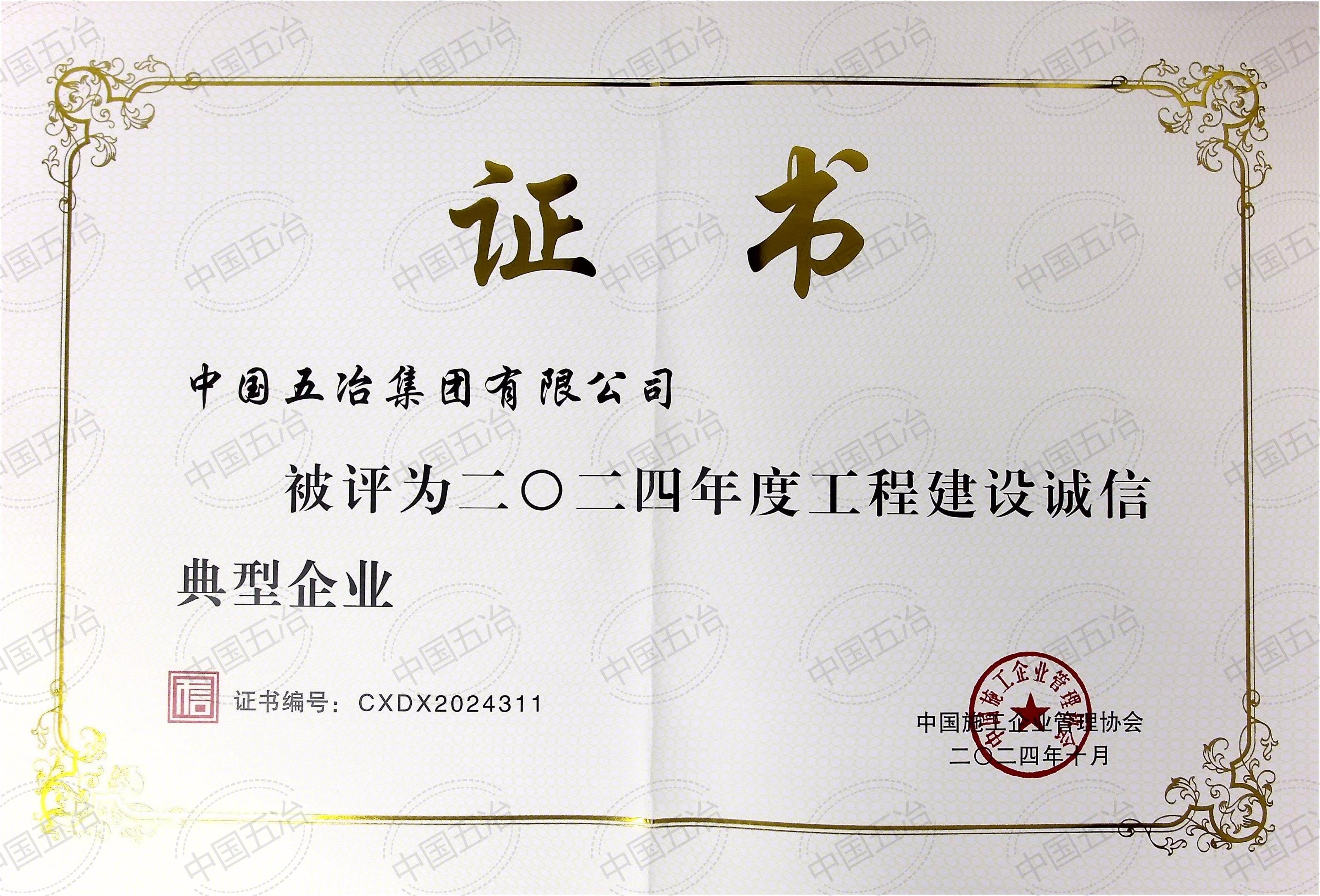 首頁 企業榮譽綜合獎中國工程建設誠信典型企業
