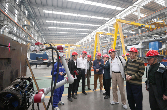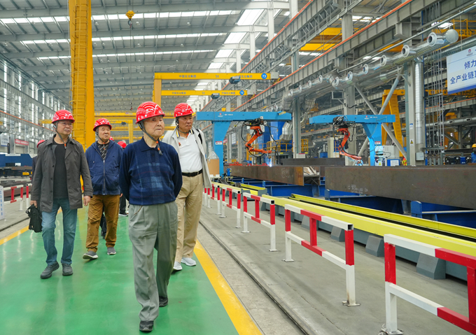 在中國五冶(成都)建筑科技產業(yè)園,退休領導們走進行業(yè)領先的裝配式混凝土和全自動無人化鋼結構智造基地,參觀了國內首條全智能鋼結構零部件生產線、業(yè)內最先進的鋼結構智能制造車間和焊接機器人工作站,以及工廠全生命周期智慧管控中心等設施,與現場人員就相關生產工藝、質量管理、市場推廣及工程應用情況進行了交流。在四川省唯一國家級認證零碳建筑——五冶科技中心大廈,大家觀看了公司自主研發(fā)的建筑智慧低碳運維系統(tǒng)及智能建筑機器人產品演示,并參觀院士專家工作室和建筑工業(yè)化與智能建造、城市更新、裝配式鋼結構建筑、智慧機電、公園城市、綠色與智慧巖土等工程技術研究中心,了解公司在創(chuàng)新平臺建設和新質生產力培育等方面的新舉措、新成效。在項目遠程指揮中心和集團展廳,大家細致了解了公司數字化企業(yè)大腦建設情況,以及打造全產業(yè)鏈頂級服務商取得的新業(yè)績、新成果。