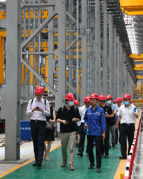 隨后,考察團一行現(xiàn)場參觀了中國五冶已建成投產(chǎn)的先進的PC及鋼結(jié)構(gòu)生產(chǎn)廠,對有關(guān)產(chǎn)品、產(chǎn)能、市場占有率、技術(shù)、成果等進行了詳細(xì)深入的了解,目睹了國內(nèi)最大最先進的鋼板預(yù)處理生產(chǎn)線、國內(nèi)最先進的數(shù)控切割機、國際領(lǐng)先水平的自動化焊接機器人、業(yè)內(nèi)最大的矯正機等“高精尖”先進設(shè)備,對映入眼前的現(xiàn)代化、高水平的產(chǎn)業(yè)園區(qū)所嘆服,紛紛點贊中國五冶的綜合實力,并表示建筑科技產(chǎn)業(yè)園的技術(shù)實力和裝備水平達(dá)到了國內(nèi)和行業(yè)一流,通過技術(shù)驅(qū)動高質(zhì)量建造,打造裝配式全產(chǎn)業(yè)鏈優(yōu)勢,從而占領(lǐng)未來建筑發(fā)展高地,這種理念和思路具有很強的前瞻性,集中體現(xiàn)和展示了五冶一流的建造方式、商業(yè)模式和工程總承包實力。