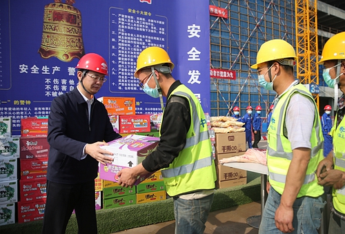 朱永繁一行先后來到成都東部新區金融創新中心、青羊區文殊坊文創區二期項目建設現場,為員工送上豬肉、水果、牛奶、礦泉水、面包等節日慰問品,對大家在五一期間盡責堅守,辛勤工作表示問候,并聽取了項目概況、工期進度、技術質量管理等方面情況匯報,強調要持續提升現場工作質量,堅持以服務客戶為己任、以客戶滿意為宗旨,用最佳的工期、品質和服務確保項目百分百履約,客戶百分百滿意,為撬動后續訂單,實現滾動發展提供有力支撐。